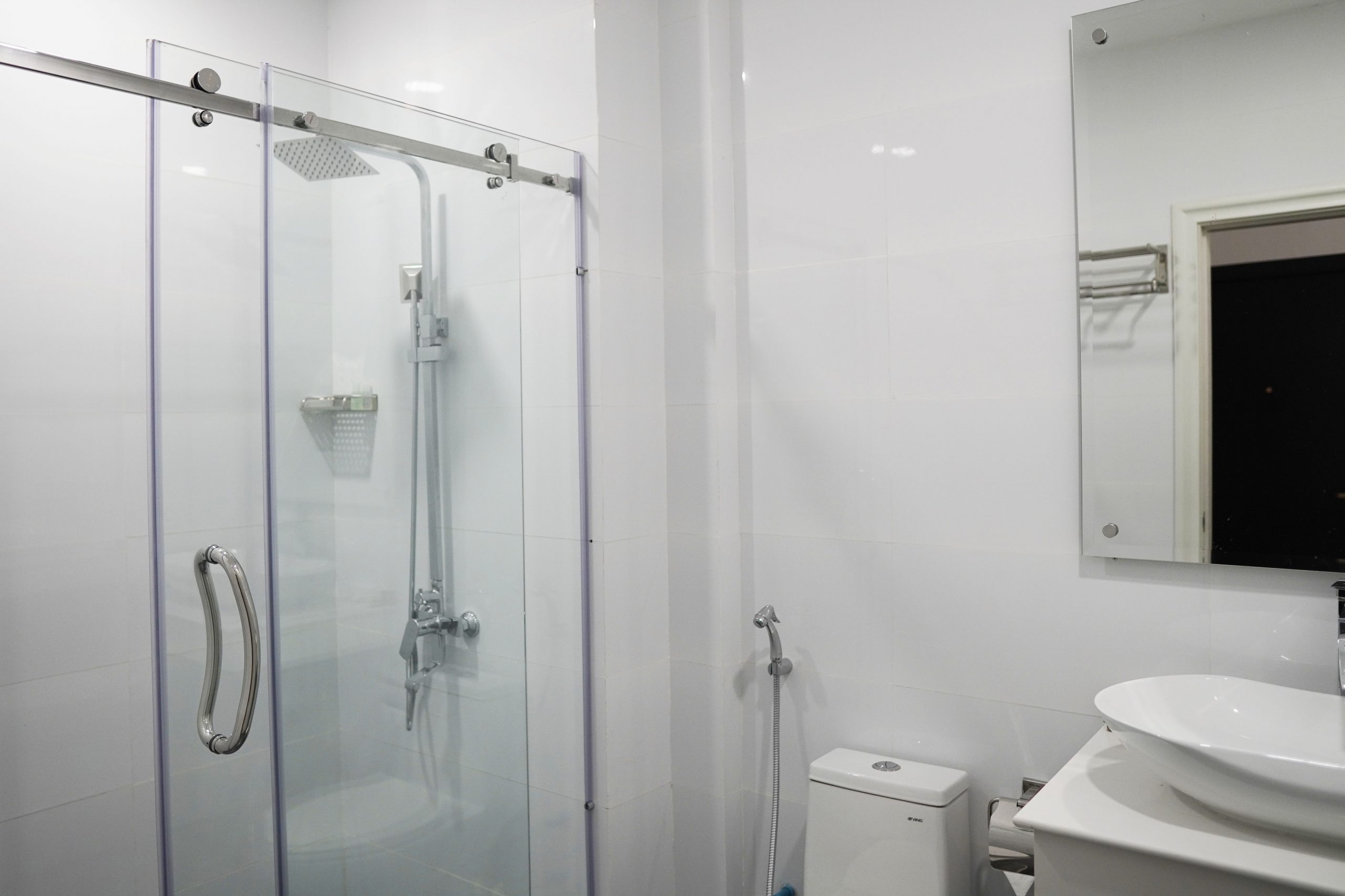 - A good-sized washroom with glass shower